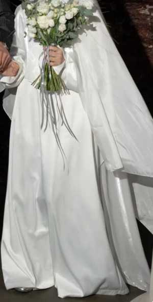 Свадебное платье, надето было 1 раз. Сверху накидка-кейп из органзы, к платью не пришита. Платье сзади на молнии.