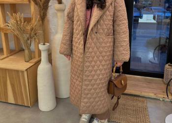 Стеганный пуховик в бежевом цвете Длина макси Размер стандартный Выдержит -20 градусов