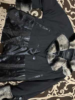 Куртка черная одела один раз . Воротник из натурального меха и рукава, ремень Нат кожа и нижняя часть куртки,