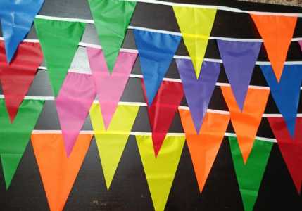 Флажки уличные ткань полиэстер. Размер флажка 30 на 18 см. Расстояние между флажками 12 см. Имеется 100 метров, 50, 20