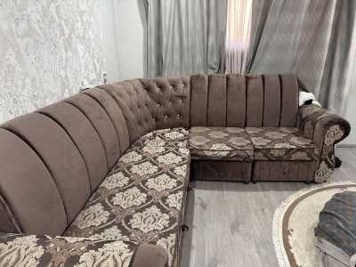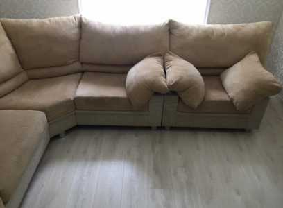 Угловой диван с раздвижным механизмом и креслом в отличном состоянии.