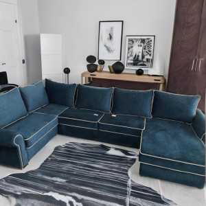 Продаётся диван, бу, в хорошем состоянии, угловой, угл справа, темно синий из водоотталкивающей замши, цена договорная