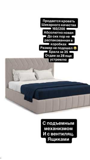 Продается кровать • 160/200 • Абсолютно новая До сих пор не распакованная Размер не подошел Брала за 35 С подъемным...